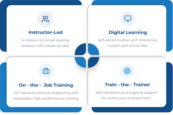 We design and deliver training programs that enable consistency, capability, and measurable results across your workforce. Our solutions are built to support organizations of all sizes by strengthening employee performance, improving operational alignment, and ensuring teams have the skills needed to succeed in evolving business environments. Through structured learning experiences, practical tools, and scalable delivery.